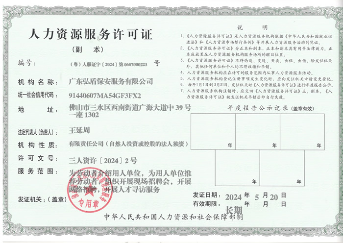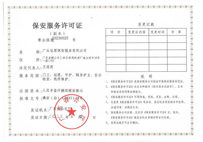 • 弘盾保安總公司營業(yè)執(zhí)照